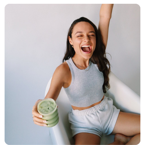De krachtige antioxidanten in matcha bestrijden vrije radicalen, wat helpt om de huid te zuiveren en een gezonde, stralende tint te bevorderen.